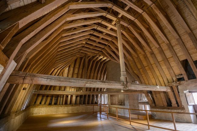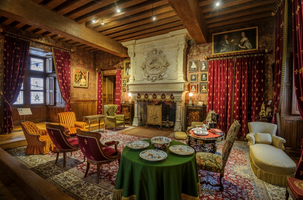 Le corps de logis principal, d’une grande élégance, représente une subtile alliance entre les traditions françaises et des décors inspirés de l’Antiquité italienne, conférant à l’architecture une singularité incontestable. Le majestueux escalier d’honneur, intégré au bâtiment tout en étant ouvert sur l’extérieur, est un véritable chef-d’œuvre dont la sophistication et la finesse fascinent encore aujourd’hui. Ses façades ornées et ses plafonds à caissons en font l’un des plus beaux escaliers de France. À l’époque de sa construction, au XVIe siècle, son tracé rectiligne en « rampe sur rampe » constituait un modèle unique dont le trésorier de François Ier pouvait légitimement être fier. Cependant, malgré une ascension fulgurante, Gilles Berthelot, éclaboussé par des affaires de malversations financières, fut contraint d’abandonner sa propriété. Il laissa néanmoins à la postérité un superbe château dont les intérieurs furent décorés au début du XVIIe siècle par Antoinette Raffin, dame d’honneur de la reine Margot.