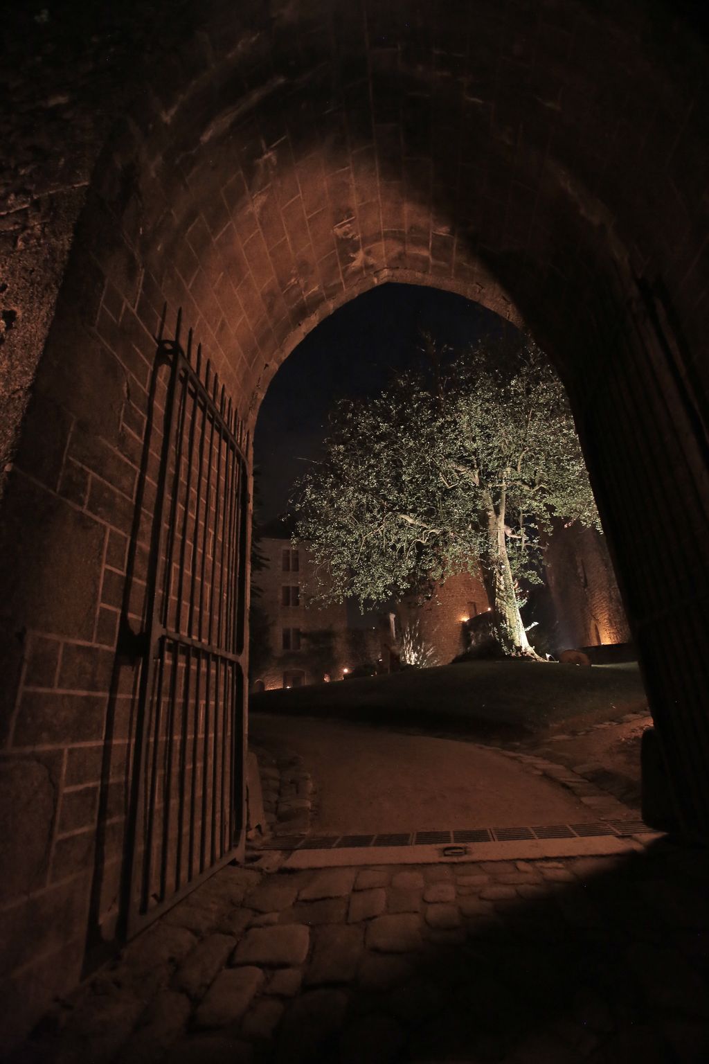 Lors des visites guidées du château, les visiteurs peuvent découvrir le fonctionnement d’une garnison militaire du XVe siècle. La visite des intérieurs conduit dans plusieurs salles meublées telles que la chambre à coucher, la salle d’armes ou encore la cuisine avec son curieux potager en granit et sa belle collection de cuivres anciens. Lors des premières et dernières visites de la journée, le public est invité à manœuvrer le pont-levis. Une expérience à ne pas manquer ! Une promenade dans le parc romantique complète la visite.