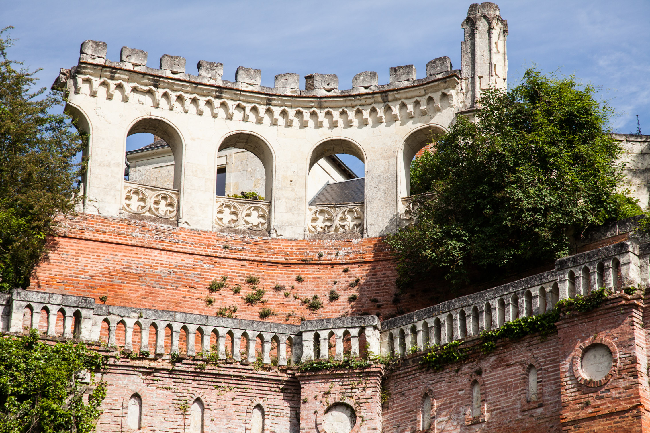 En 1830, le parc s’enrichit d’une étonnante et insolite construction néogothique destinée à isoler le château du reste du village. Véritable décor de théâtre de plus de trente mètres de haut, ce mur de brique et pierre apporte une dimension romantique unique aux jardins du château. Le commanditaire de cette « folie architecturale » sur trois niveaux est Amédée de Nonant, propriétaire de l’époque qui choisit de donner à cette construction le nom de « Terrasse Caroline » en hommage à son épouse. Cette construction pittoresque surplombe notamment le pigeonnier, beaucoup plus ancien mais resté en très bon état, qui contient pas moins de 1600 boulins.