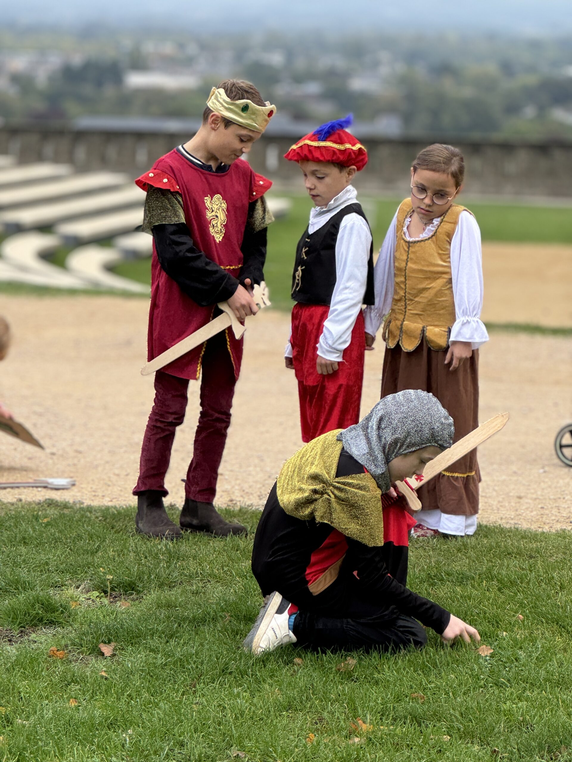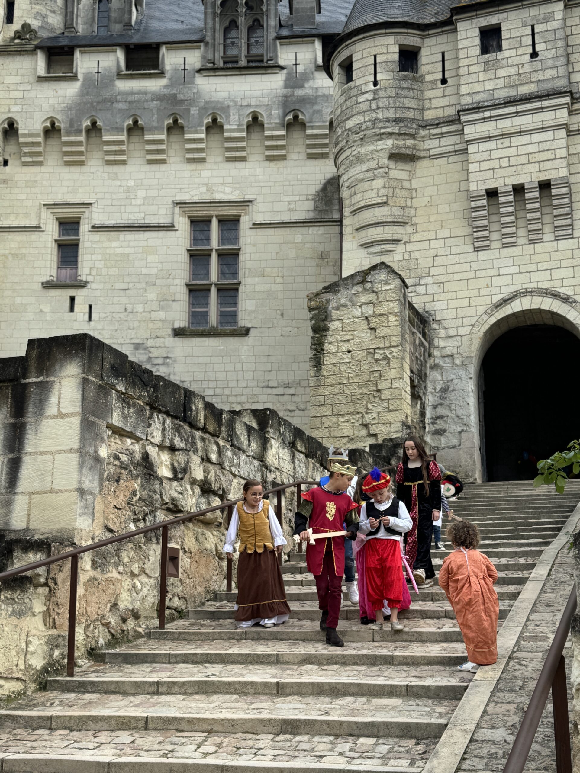 Le château de Saumur est installé à la pointe d’un promontoire dominant le confluent de la Loire et du Thouet ainsi que la plaine environnante. Le premier édifice, mentionné dans un texte de 968, ne laisse que très peu de traces. L’histoire retient simplement qu’il est construit par Thibault le Tricheur, comte de Blois, pour protéger le monastère de Saint-Florent qui s’est installé sur le site quelques années auparavant. En 1026, le comte d’Anjou Foulques Nerra s’empare du château qui restera aux mains des comtes d’Anjou jusqu’à la défaite de Jean Sans Terre en 1203. Un donjon imposant est construit au début du XIIe siècle, construction qui donnera la forme quadrangulaire du château. En 1351, le roi de France Jean le Bon donne le comté d’Anjou en apanage à son second fils, Louis, qui devient en 1360 Louis Ier, duc d’Anjou. Nous lui devons notamment la transformation de la forteresse en château-palais. Il fait araser le donjon initial et exhausser la cour intérieure. La fameuse miniature du mois de septembre qui illustre les « Très riches Heures du duc de Berry » donne une image fidèle du somptueux édifice tel qu’il était au début du XVe siècle. Ce n’est qu’à la mort du Roi René en 1480 que le château de Saumur et plus globalement l’Anjou reviennent au domaine royal.