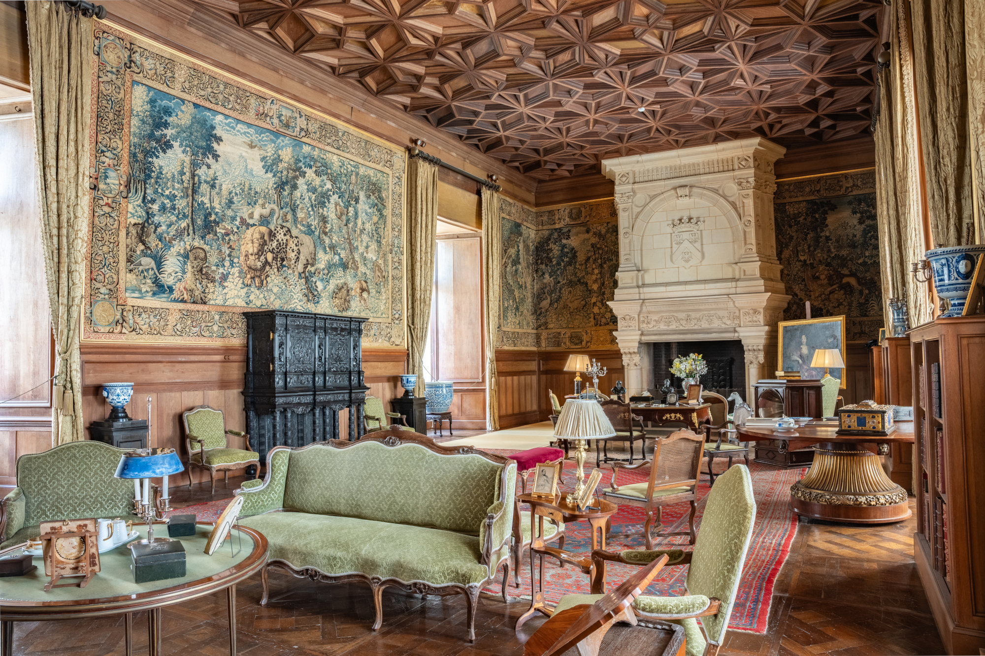 Dernier des grands châteaux de la Loire en descendant le fleuve royal, Serrant est un monument privé et habité, témoignage de l’histoire mais aussi lieu animé où s’y déroulent chaque année de nombreuses activités. Il présente un ensemble d’objets et de meubles particulièrement précieux et varié, à commencer par sa bibliothèque qui garde entre ses solides étagères en chêne des ouvrages absolument remarquables : on y découvre par exemple la première édition complète de l’Encyclopédie de Diderot et d’Alembert, ou encore les Fables de la Fontaine illustrées par Oudry.