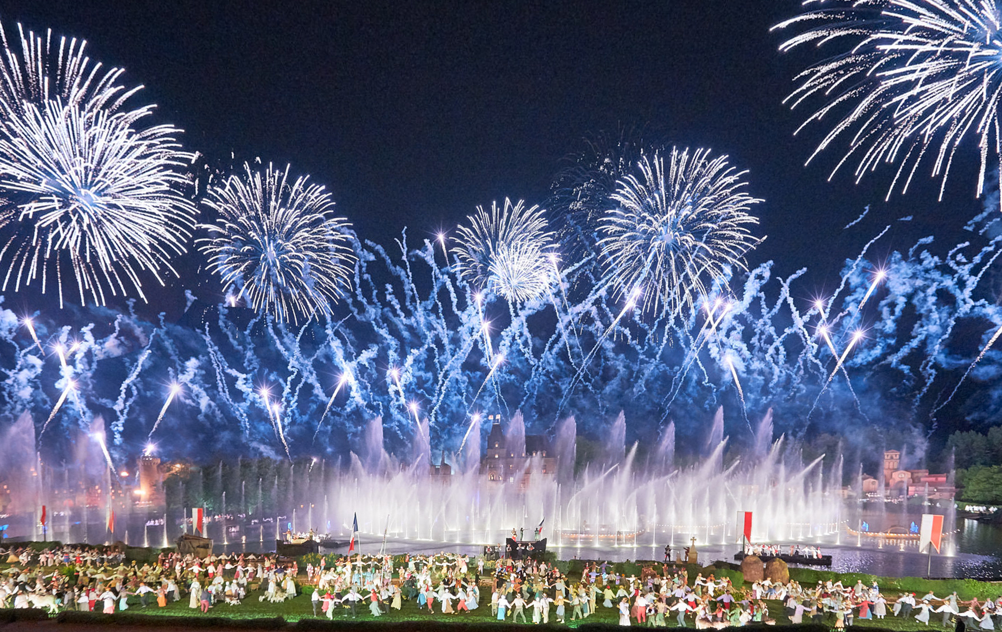 Le château est classé monument historique depuis seulement quelques années lorsque Philippe de Villiers décide d’y créer un spectacle en 1977. La Cinéscénie met alors en scène l’histoire de la Vendée, du Moyen Âge à la Seconde Guerre mondiale en insistant sur la période mouvementée des guerres révolutionnaires. Le succès est tel qu’un Grand Parc est créé en 1989, d’abord autour d’un village reconstitué du XVIIIe siècle. Les années passent et les visiteurs répondent de plus en plus présents au rendez-vous. Dans le parc, les créations de spectacles s’enchaînent. Autour d’eux, c’est tout un univers qui s’organise pour plonger le visiteur au cœur de l’Histoire de France.