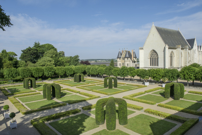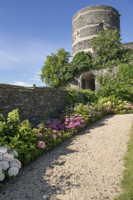La forteresse abrite également des jardins exceptionnels par leur diversité : le jardin régulier de buis et d’ifs, la vigne, le potager, la roseraie, le jardin d’hortensias, le jardin suspendu et ses plantes médicinales, tinctoriales, maléfiques… Certaines sont aussi par ailleurs représentées sur la tapisserie de l’Apocalypse. Ces jardins, qui associent histoire et innovation dans une démarche de développement durable, constituent pour les promeneurs un lieu de respiration des plus agréables. Pour faire vivre ce patrimoine unique, le domaine national du château propose régulièrement à ses visiteurs des expositions temporaires dans les salles du logis royal ou même dans les jardins.
