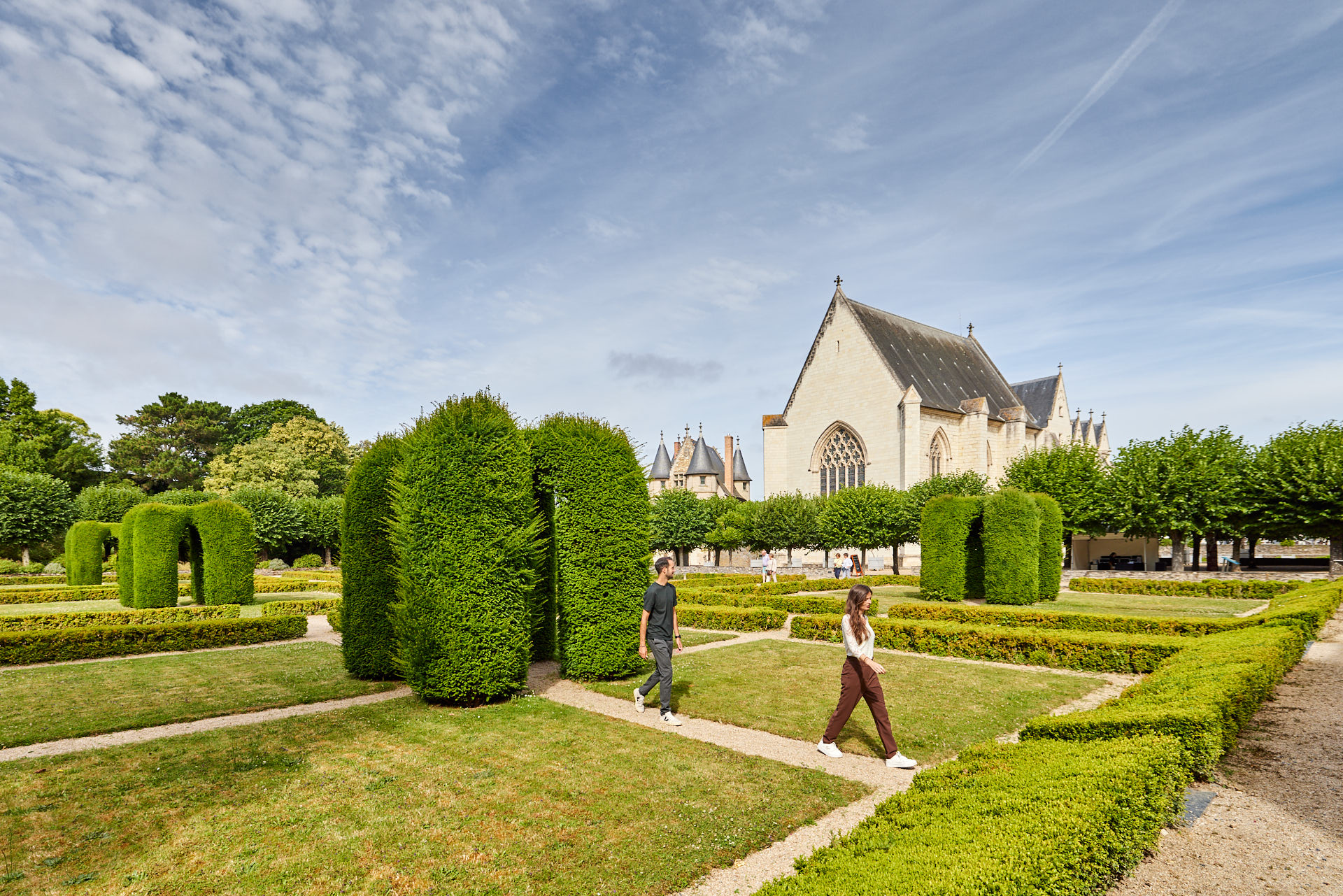 La forteresse abrite également des jardins exceptionnels par leur diversité : le jardin régulier de buis et d’ifs, la vigne, le potager, la roseraie, le jardin d’hortensias, le jardin suspendu et ses plantes médicinales, tinctoriales, maléfiques… Certaines sont aussi par ailleurs représentées sur la tapisserie de l’Apocalypse. Ces jardins, qui associent histoire et innovation dans une démarche de développement durable, constituent pour les promeneurs un lieu de respiration des plus agréables. Pour faire vivre ce patrimoine unique, le domaine national du château propose régulièrement à ses visiteurs des expositions temporaires dans les salles du logis royal ou même dans les jardins.