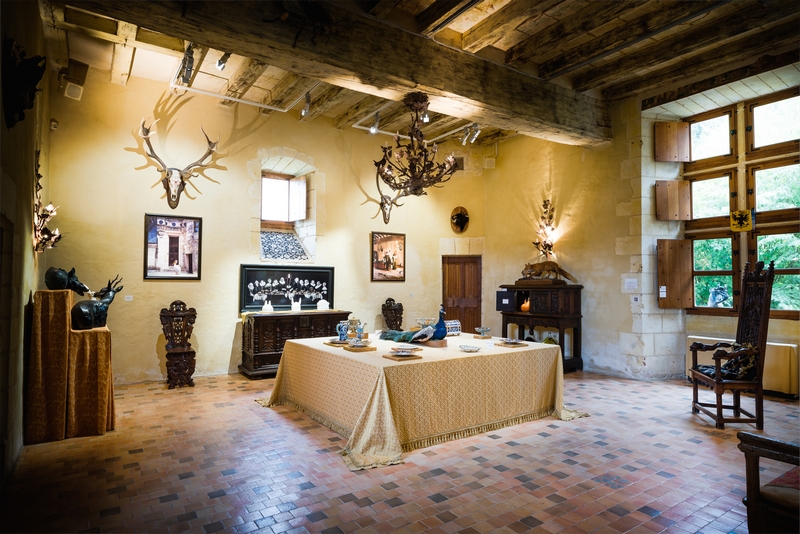 Pourtant, c’est bien une atmosphère de grandeur et de majesté qui se dégage des vastes pièces du château. Tout participe à cette impression : des monumentales cheminées gothiques aux murs enduits de badigeon de chaux, de la somptueuse tapisserie de Bruxelles jusqu’aux coussièges devant les fenêtres à meneaux. L’épisode biblique du Festin de Balthazar, peint à la Renaissance par un maître hollandais, décore la grande salle du festin, tandis qu’au plafond, la fresque a frescoréalisée par un maître italien rappelle les quatre saisons de la vigne.