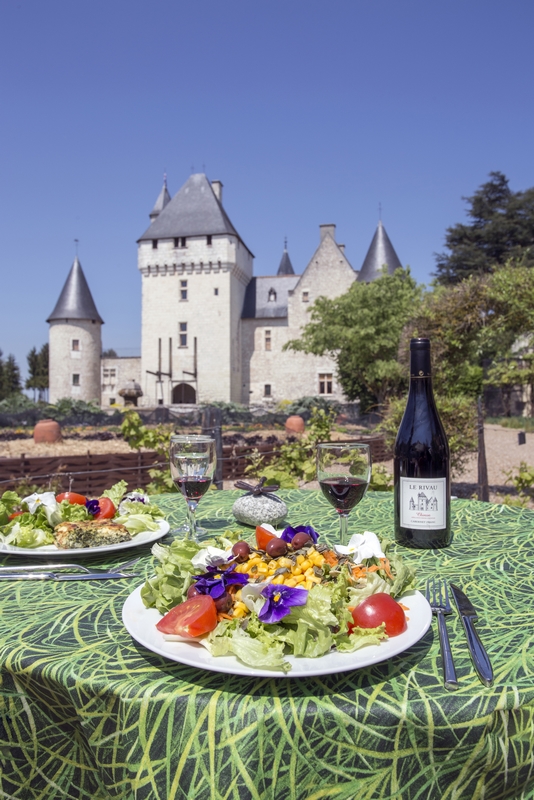 Le château du Rivau est donc un précieux témoignage du passé tout en étant particulièrement inscrit dans son temps. À l’extérieur, il conjugue histoire et botanique dans un tourbillon de merveilles et de contes de fée. Les quatorze jardins, créés à partir de 1995 par Patricia Laigneau, explorent le langage universel des fleurs à l’aide de leurs couleurs, leurs parfums et leurs graphismes. Chaque jardin a un thème de couleur inspiré par son orientation. La profusion des collections botaniques, dont beaucoup de variétés anciennes, assure la biodiversité dans le respect de l’environnement et une floraison tout au long de la belle saison. Classés Conservatoire de la Rose Parfumée, les jardins présentent plus de 450 variétés de roses et des milliers d’autres plantes, transformant les extérieurs du monument en véritable paradis botanique grâce aux différents arômes que la collection de roses disperse dans l’atmosphère.