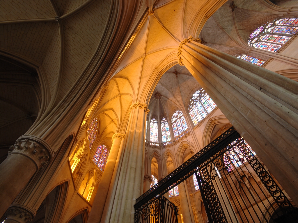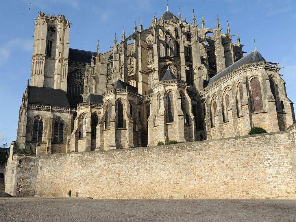 L’ensemble de ces oeuvres est dominé par un orgue d’une grande beauté signé du célèbre architecte Simon Hayneufvre. Datant de 1519, il présente l’un des plus beaux buffets français de la Renaissance. Enfin, de précieuses tapisseries présentant la vie des saints Gervais et Protais ainsi que celle de Saint-Julien, complètent cette collection. Pour couronner le tout, la cathédrale Saint-Julien offre un panorama exceptionnel de la production verrière depuis le XIe siècle jusqu’à nos jours. Parmi l’ensemble des vitraux, on trouve un véritable trésor : L’Ascension, réalisée à la fin du XIe ou au tout début du XIIe siècle, est le plus ancien vitrail conservé dans un édifice religieux. Témoin d’histoire et d’architecture, la cathédrale Saint-Julien est donc un lieu singulier, caractérisé par une sublime combinaison des styles roman et gothique. Composée de treize chapelles et d’un choeur dont la hauteur sous voûte atteint 34 mètres, elle se distingue par les nombreuses oeuvres picturales et artistiques qu’elle abrite ainsi que par ses vitraux plus spectaculaires les uns que les autres.